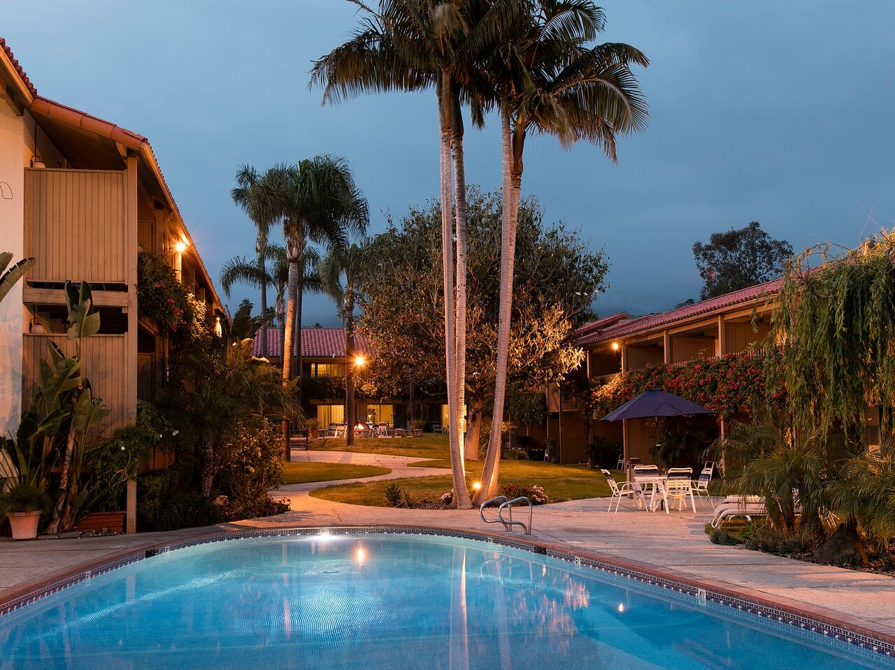 One block to the beach, marina, shopping and dining. 5 minute drive to Sansum Clinics. Two blocks from the Amtrak station. We offer 53 beautifully appointed rooms in a variety of styles. Suites with fully equipped kitchenettes. All rooms are non-smoking. Expanded continental breakfast and afternoon reception of freshly baked cookies with a coffee, tea, cocoa, and spiced cider service. Year round heated pool and spa with an on-site laundry. Complimentary HBO, and DVD players, with free wireless internet access available in all rooms. 3 diamond AAA rating.
