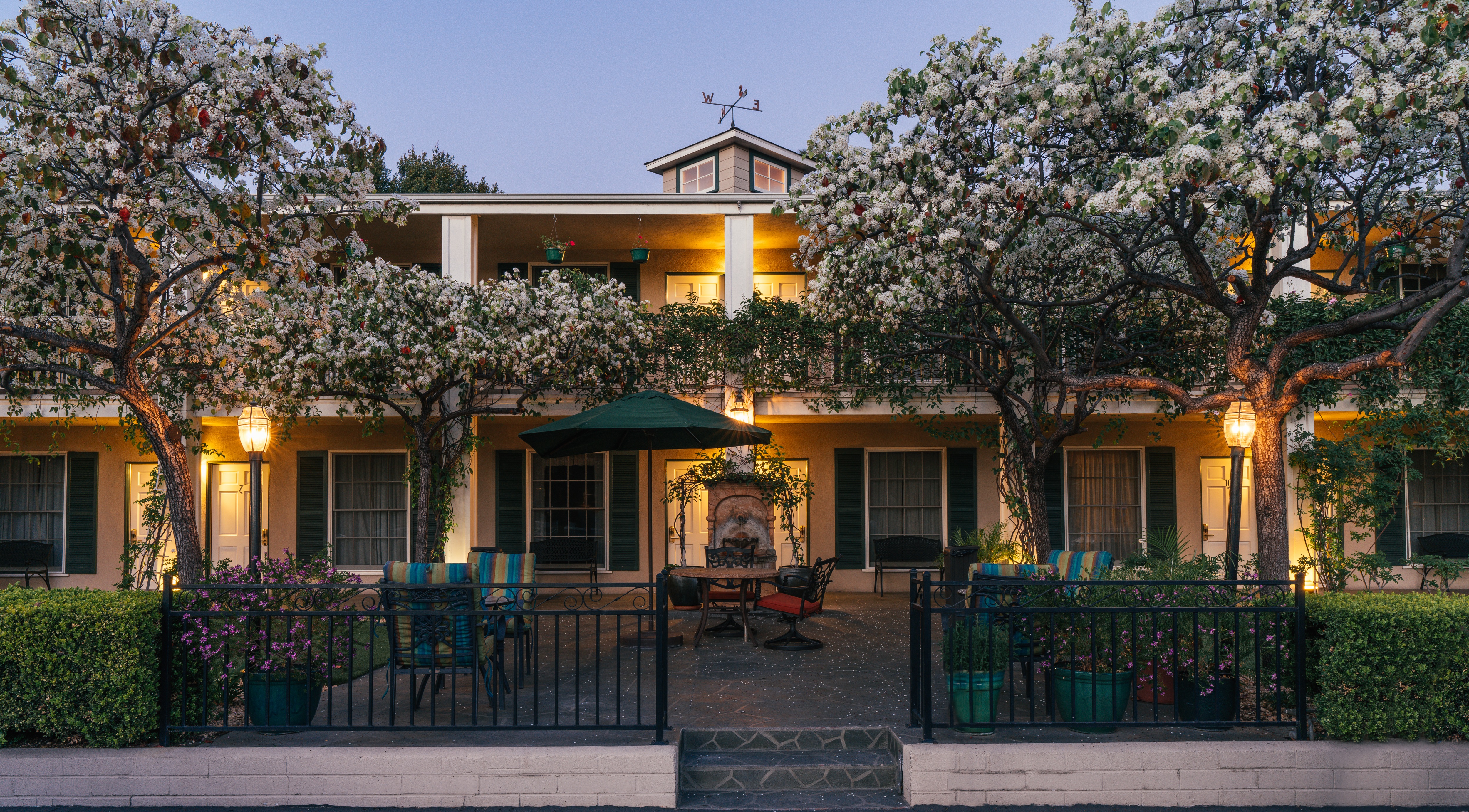 One block to beach & harbor area. 5-10 minutes to Sansum Clinic, 215 Pesetas Lane, Santa Barbara, CA 93110 and to Sansum Clinic, 317 West Pueblo Street, Santa Barbara, CA 93105. 23 guestrooms with southern charm. One block to beach & harbor area. 5-10 minutes to Sansum Clinic, 215 Pesetas Lane, Santa Barbara, CA 93110 and to Sansum Clinic, 317 West Pueblo Street, Santa Barbara, CA 93105. 23 guestrooms with French country décor. All rooms have free high-speed wireless internet service, air conditioning, refrigerator, coffee maker, complimentary HBO, and DVD Players with free movie rentals. 100% non-smoking. Complimentary deluxe continental breakfast served each morning in the hotel lobby, plus an afternoon selection of wine and cheese as well as milk and cookies in the evening. Pool and whirlpool. 3 diamond AAA rating.